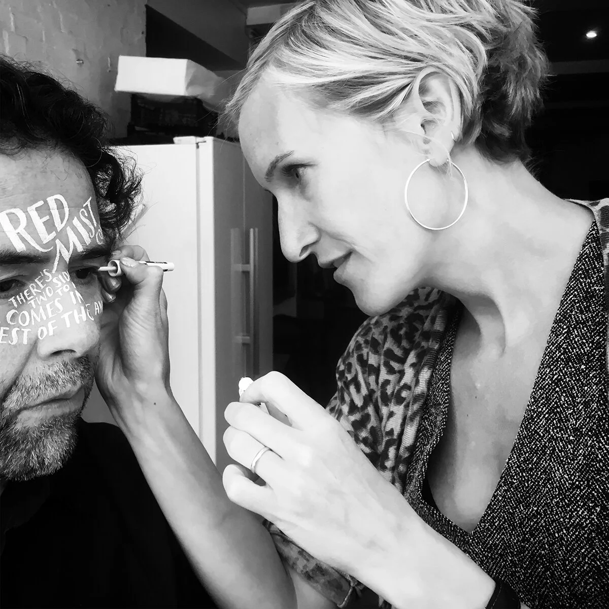 Let’s Talk is a collaboration between myself and photographer Charlie Clift that aims to spark millions of conversations about mental health. By literally drawing people’s most difficult thoughts on their faces, we hope to inspire others to open up about their own mental health. We invited volunteers from all walks of life, plus a few well-known faces, to talk about their own experiences of mental health issues. Charlie and I chose the most poignant phrases from each interview for me to hand letter onto each subject's face and then he took their portraits. The results are a set of 17 images which have become part of a nationwide campaign supported by Mental health UK.